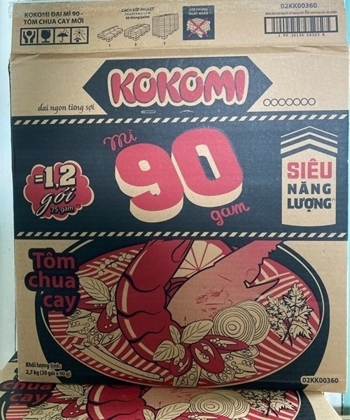 THÙNG MÌ KOKOMI ĐẠI GÓI TÔM CHUA CAY 90G 30 GÓI 袋面箱
