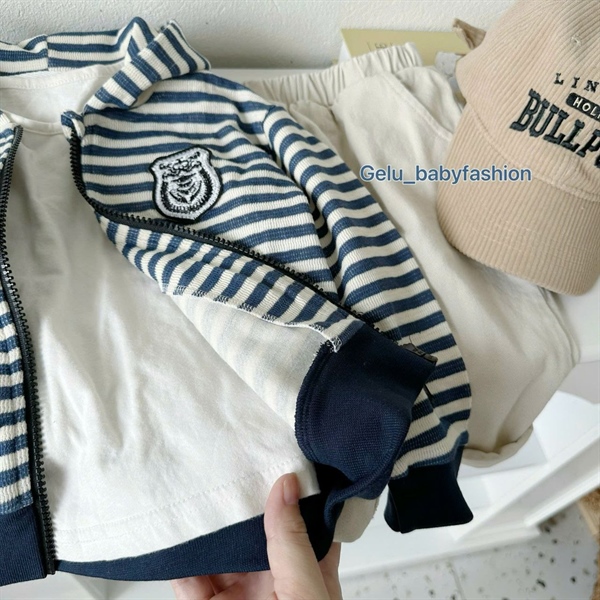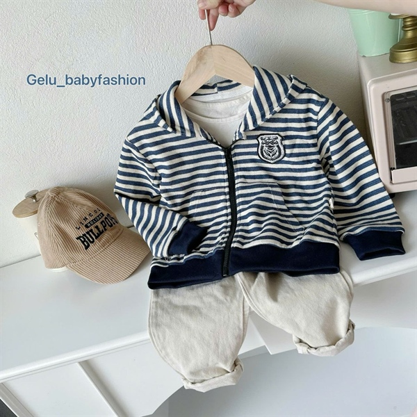 Áo khoát kẻ ngang thêu logo Huy Hiệu A225 cho bé , bé trai bé gái đều mặc đc
