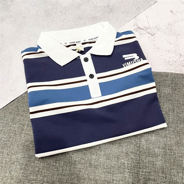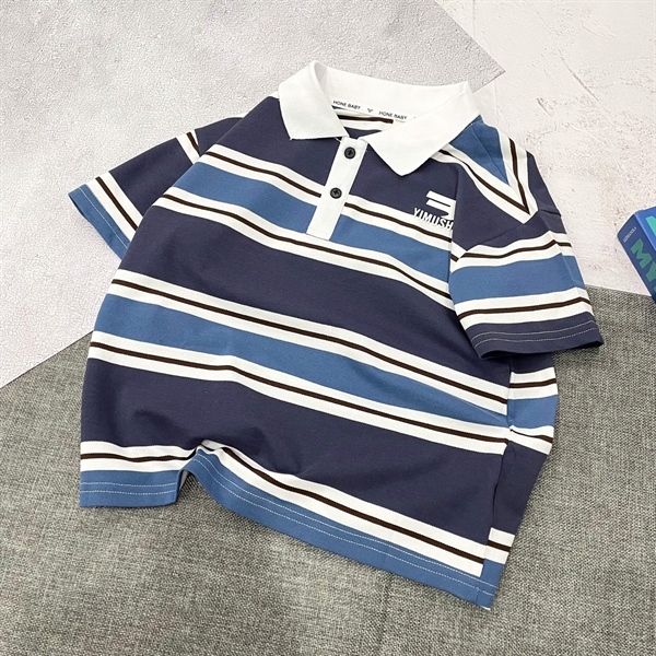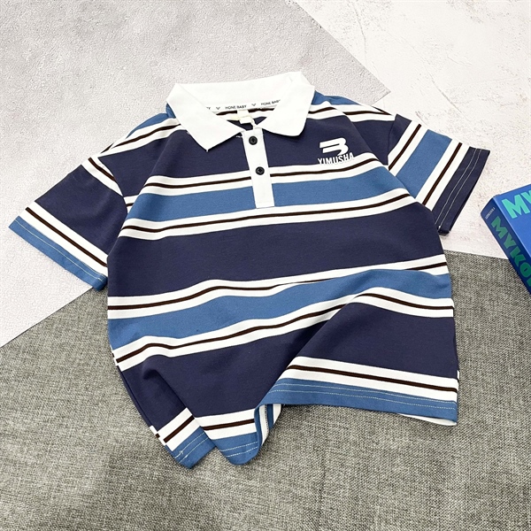 Áo thun polo bé trai QCCC B kẻ xanh 24216