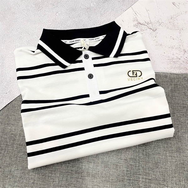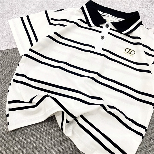 Áo bộ bé trai polo bé trai Veciny 24237 kẻ trắng