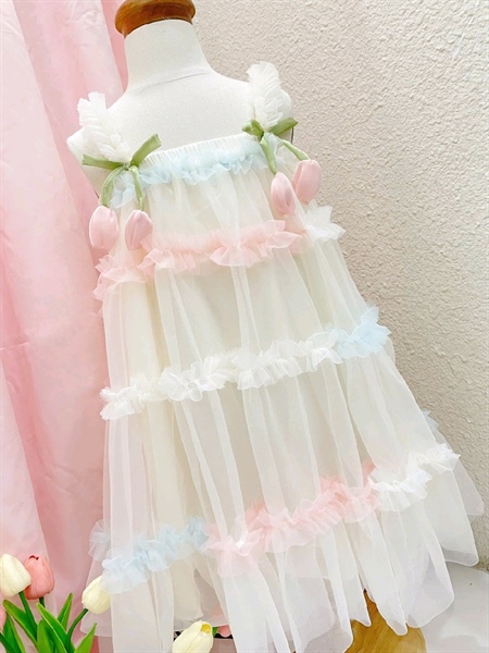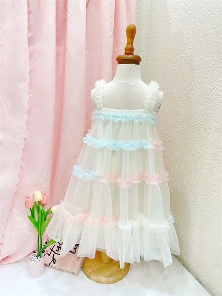 Đầm công chúa 04083 2 dây xinh iu màu xanh mix hồng mix kem màu pastel cực xinh cho bé