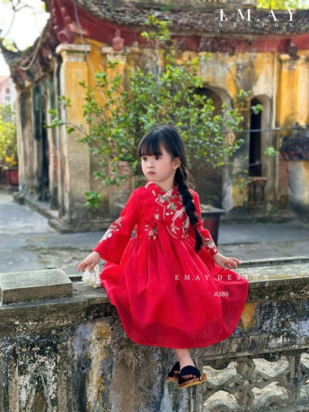 Đầm Hanbok thêu đỏ A389