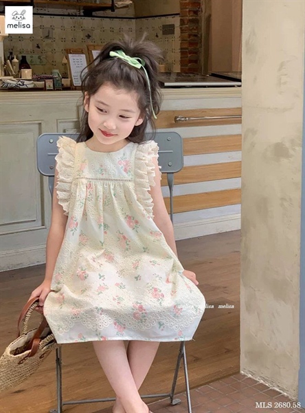 Đầm hoa thêu hoa 2 lớp cánh tiên xinh xắn MLS2680