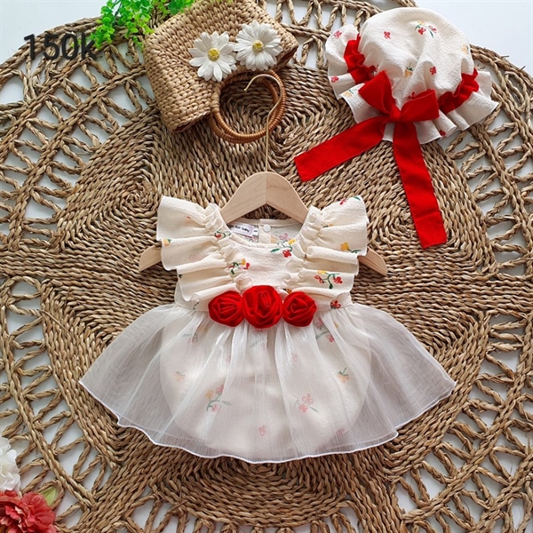 Đầm sơ sinh hoa + nón