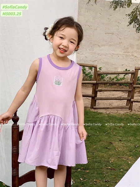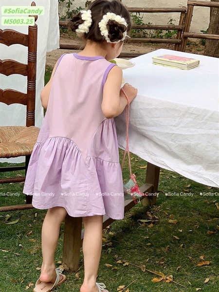 Đầm thun bé gái M5003 màu pastel phối cực xinh . toàn ram màu dễ mặc , bé nào diện cũng yêu hết