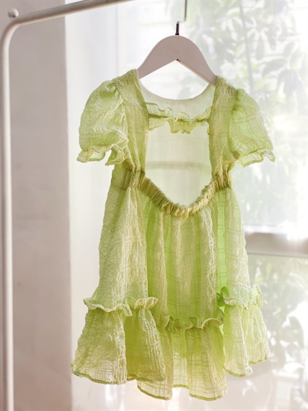 Đầm tơ xốp hở lưng xanh non