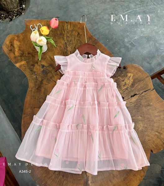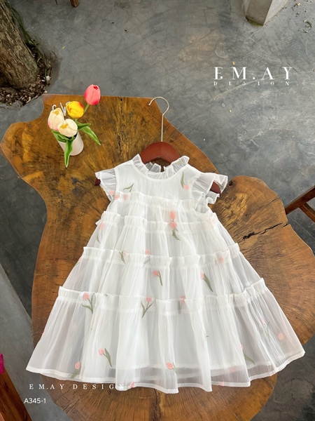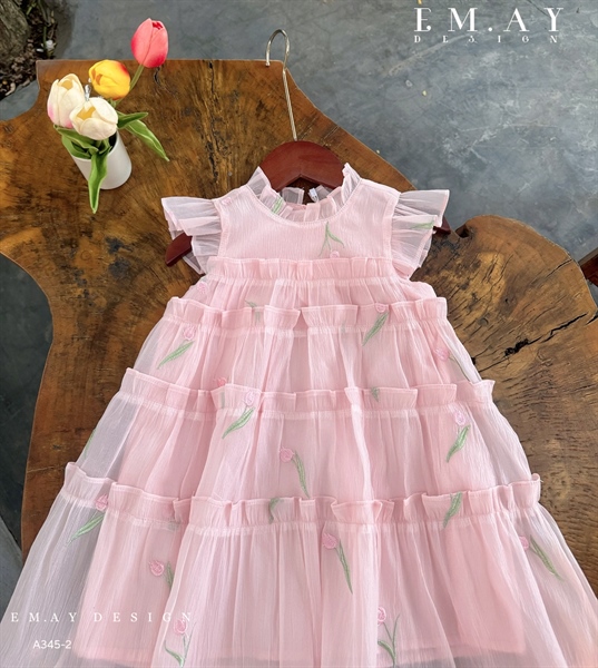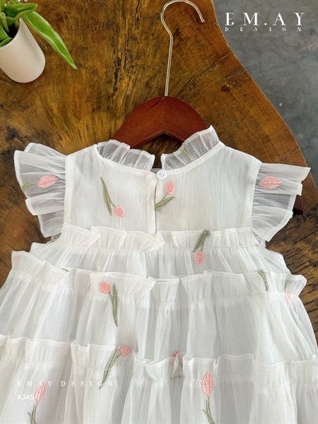 Đầm bé gái chát liệu tơ xốp tầng thêu xinh xắn A345 . mom và bé thích đơn giản đi dự tiệc em này là số 1 nha