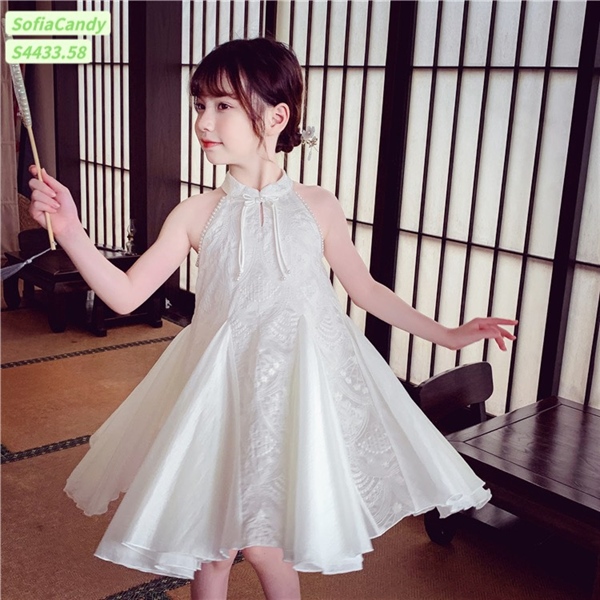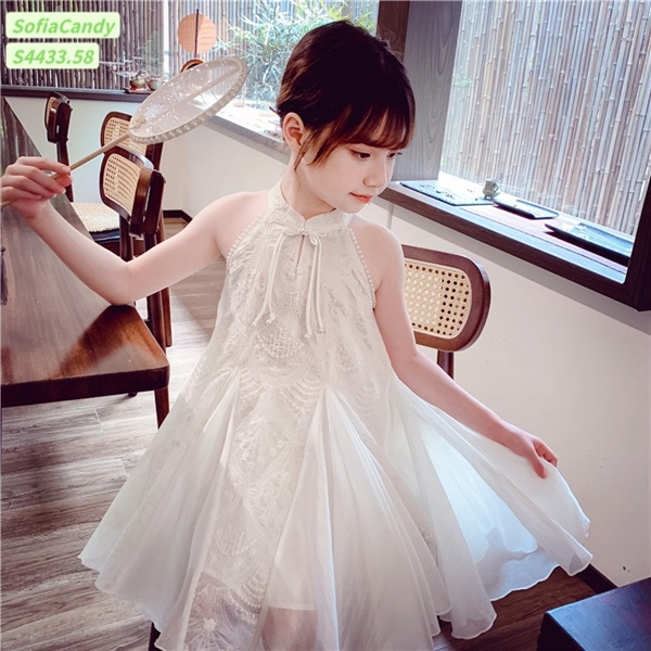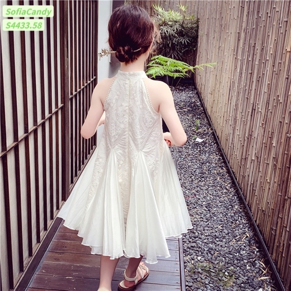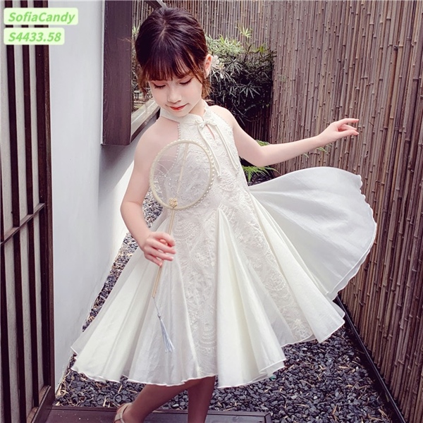 Đầm yếm trắng bé gái style Hongkong S4433 , mặc trung thu xinh lắm lun ạ