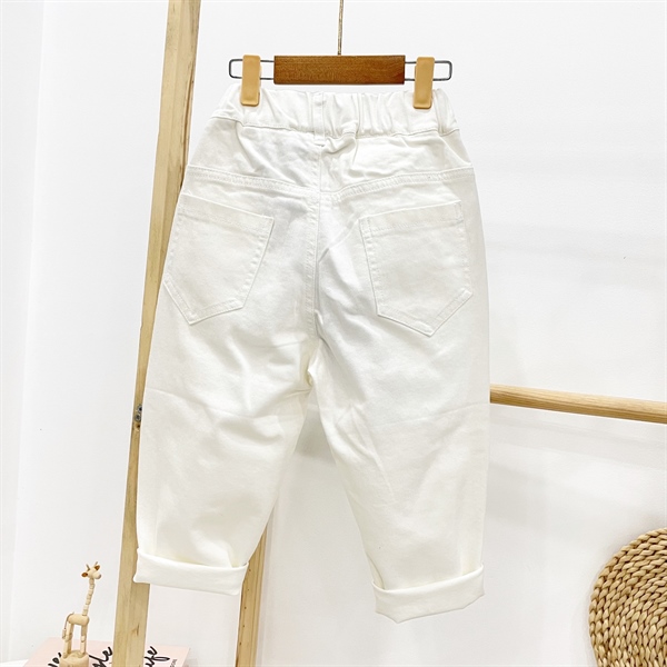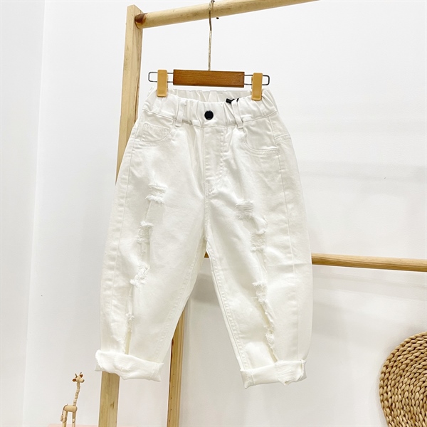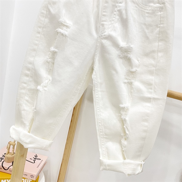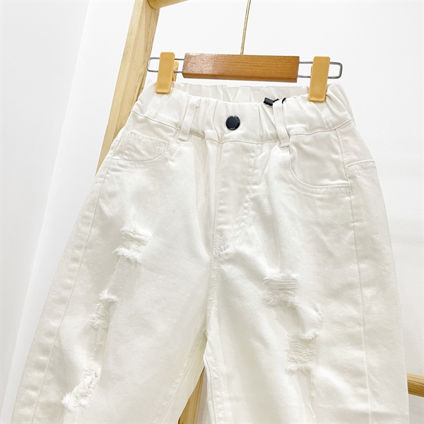 Quần jean baggy dài QCCC màu trắng kem bé gái 96013 rách xước có đủ nha