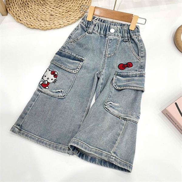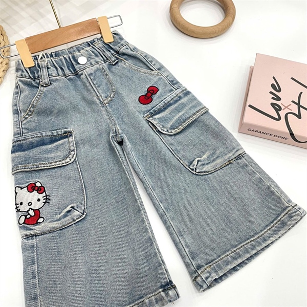 Quần jean dài suông bé gái QCCC túi hộp hello kitty
