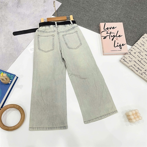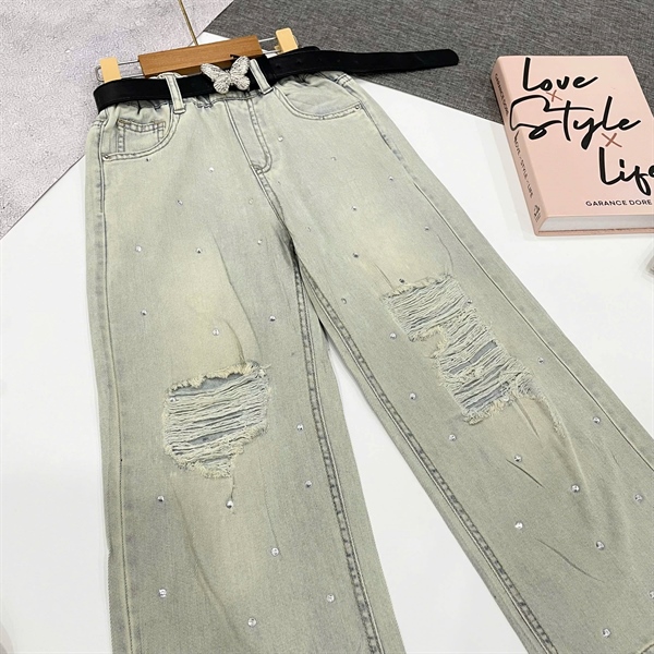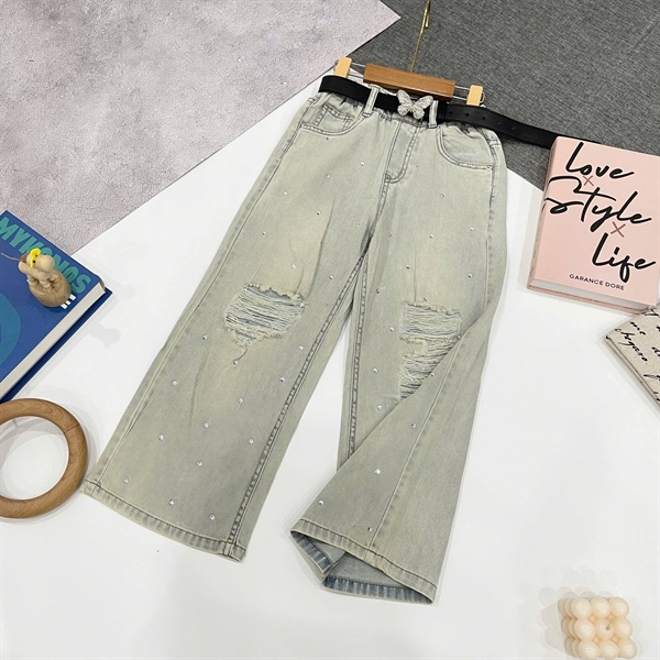 Quần jean ống suông bé gái màu bạc K6767 Đá xước rách