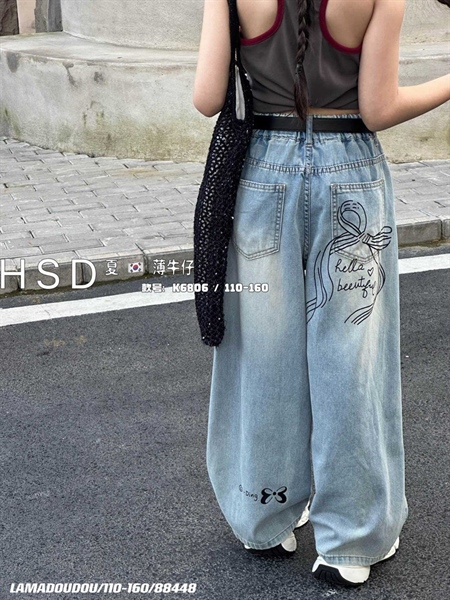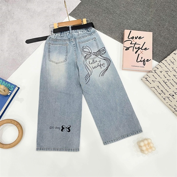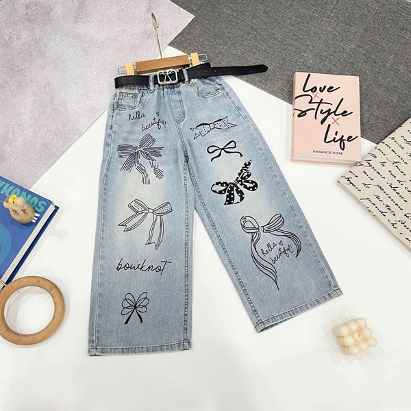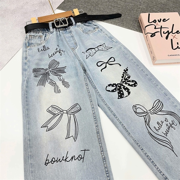 Quần jean bé gái ống suông full nơ K6806 . siu trend đổ bộ