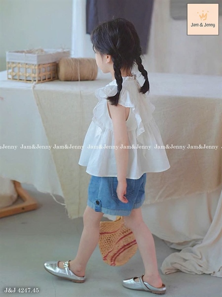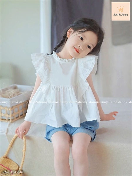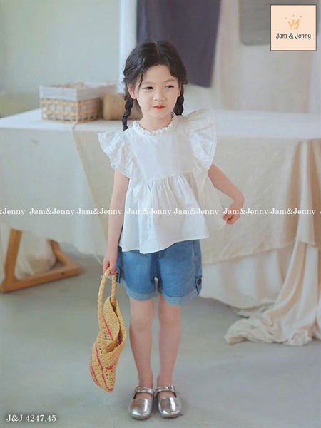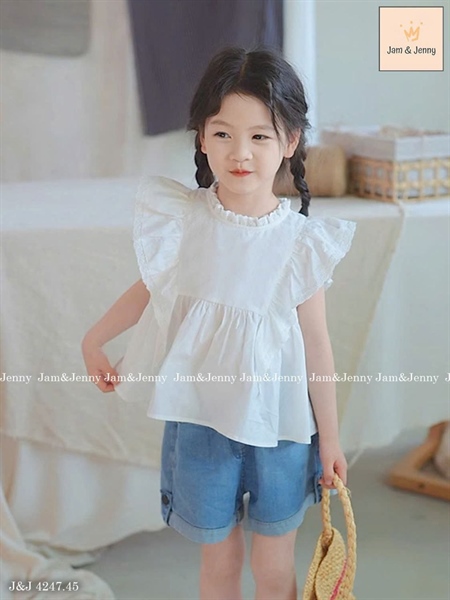 Set bộ bé gái áo trắng kiểu cánh tiên mix quần short Jean J&J4247 đẹp lắm ạ