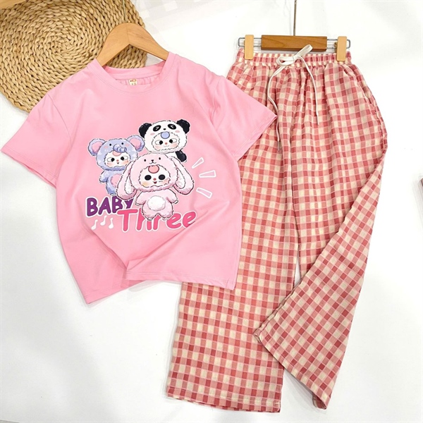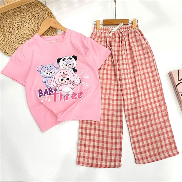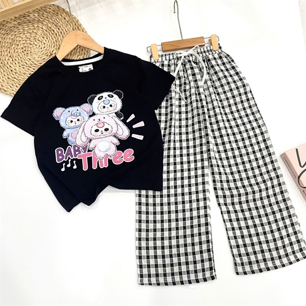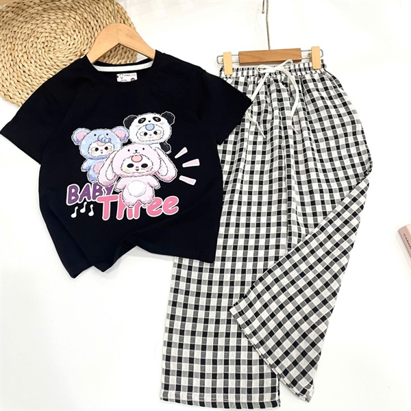 Set bộ bé gái HL0601 Áo Baby three mix quần caro kaki