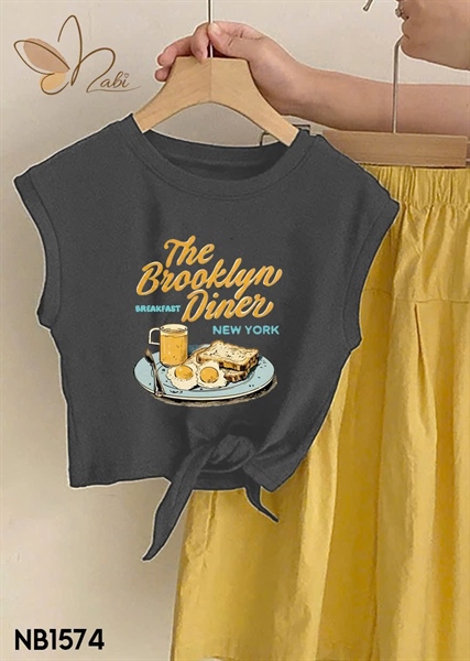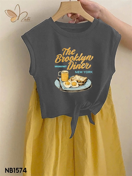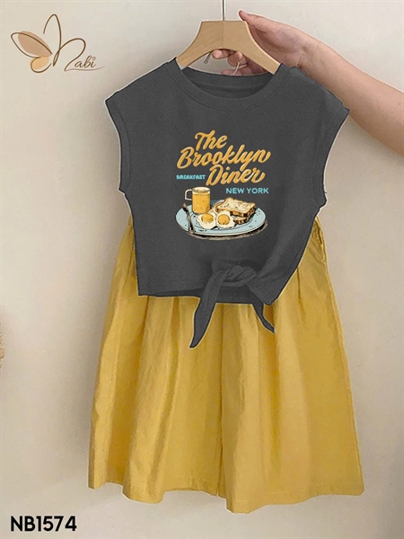 Set bộ NB1574 áo thun buộc vạt + chân váy vàng ☀️🖤