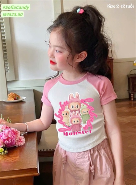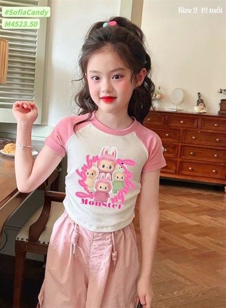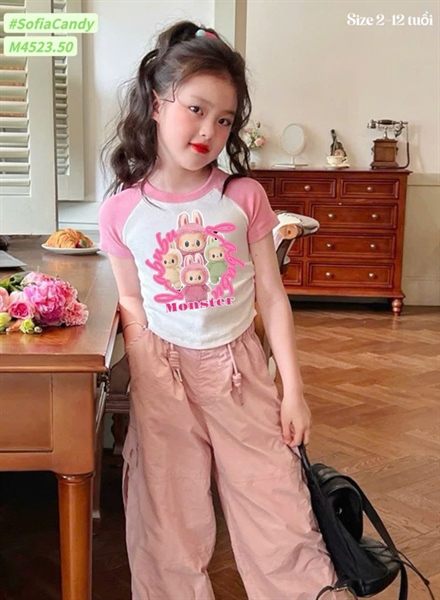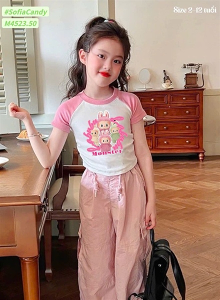 Set bộ bé gái M4523 Labubu áo croptop mix quần kaki dài
