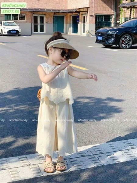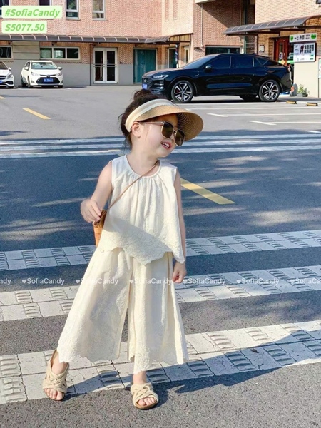 Set bộ bé gái S5077 áo trắng xô thêu phối nguyên bộ đẹp dã man lun