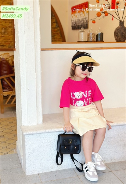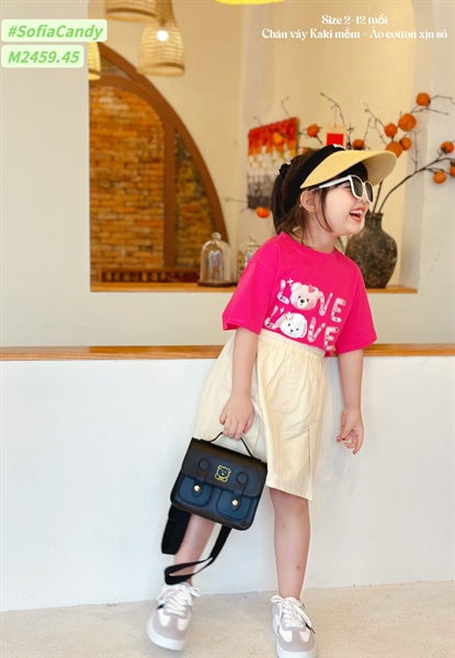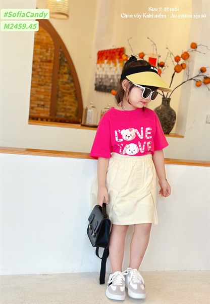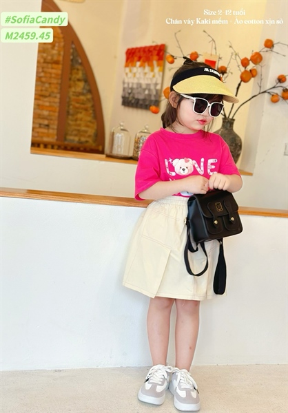Set c váy kaki M2459 áo Gấu hồng