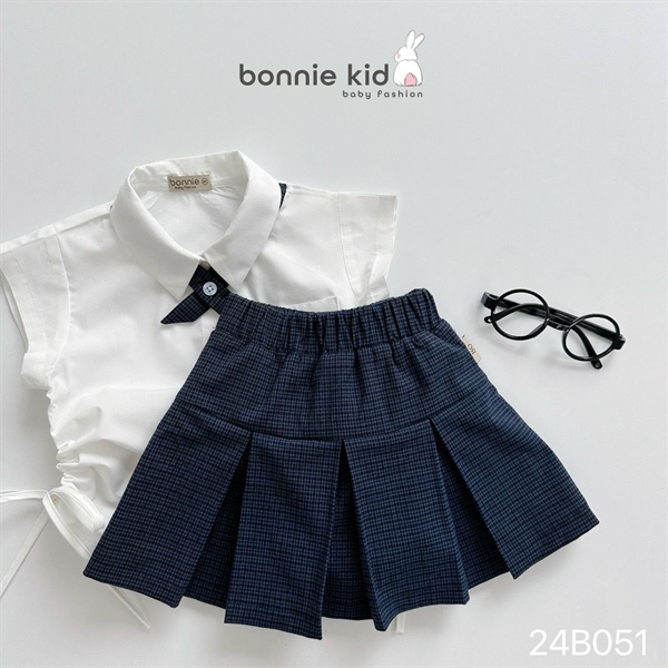 Set bộ sơ mi bé gái G24B051. Áo sơ mi dây rút mix chân váy xanh caro kèm quần bên trong rất xinh lun