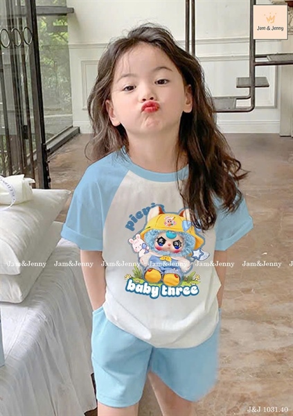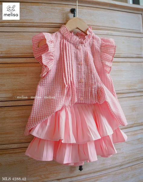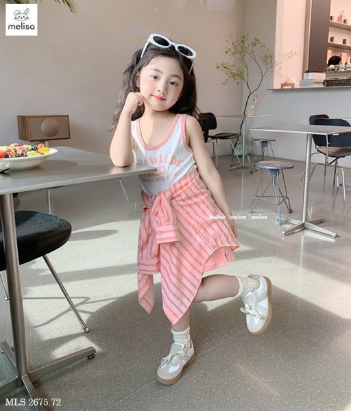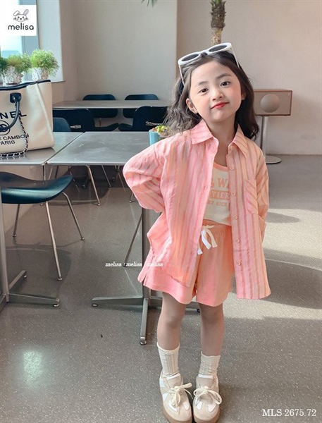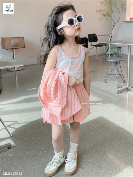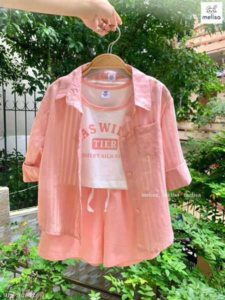 Set bộ sơ mi bé gái 3in1 MLS2675 gồm áo thun + quần short thun + áo khoát lụa ngoài , đẹp lắm mn owiiiiiii