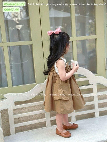 Set đầm Yếm bé gái S5047 kèm Áo thun Gân siu chất lượng , có thể lấy mix quần jean or chân váy lẻ đều đẹp nha mom