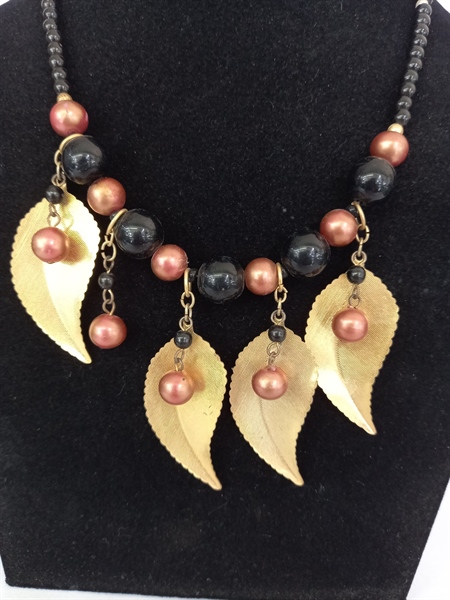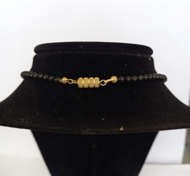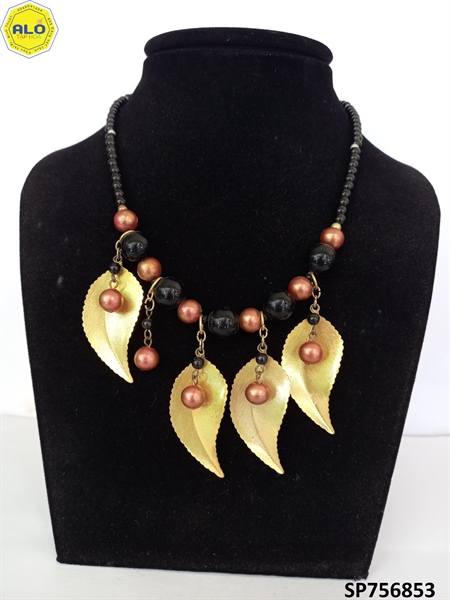 - Dây được mix hạt đen tuyền kết hợp lá mạ vàng