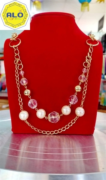 DÂY CHUYỀN THỜI TRANG PHA LÊ + HẠT GIẢ TRAI ( 35CM )