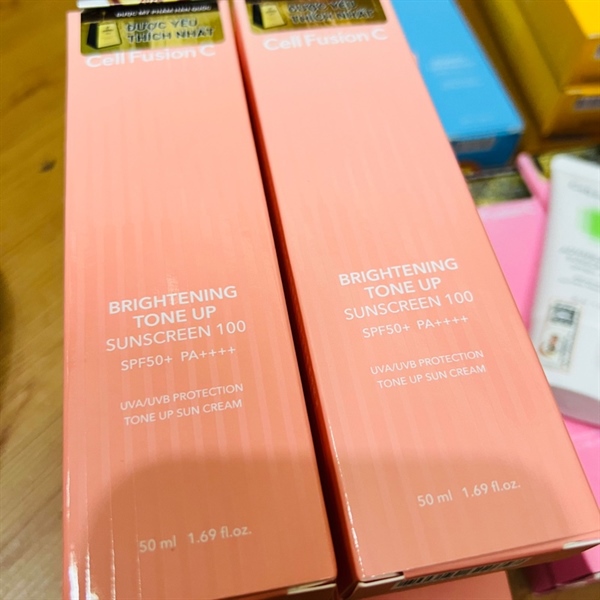 [Cell Fusion C] Kem chống nắng brightening tone up sunscreen SPF 50+ PA++++ (cam đào)