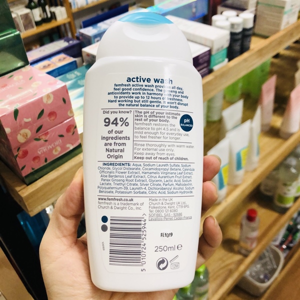 Dung dịch vệ sinh phụ nữ Femfresh Active Wash (nắp xanh) - 250 ml