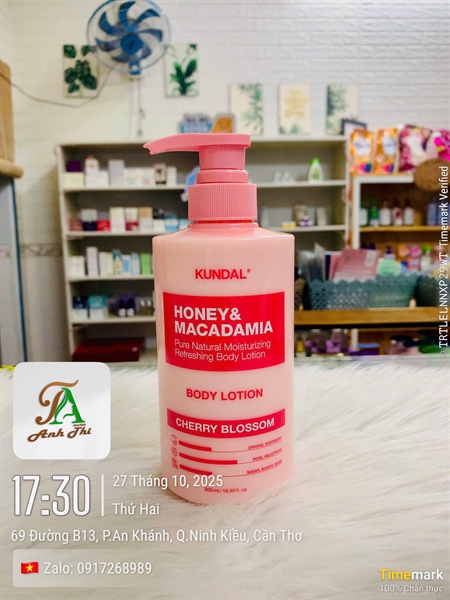 Sữa dưỡng thể Kundal Honey & Macadamia Pure Body Lotion 500mL (Cherry Blossom)