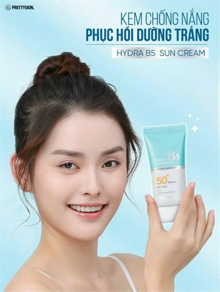 Kem Chống Nắng Pretty Skin Phục Hồi Dưỡng Trắng Hydra B5 Sun Cream SPF 50+/PA+++ có tác dụng: có chỉ số chống nắng cao 50+/PA+++ và có 7 màng lọc chống nắng tân tiến gồm Avobenzone, Zinc Oxide, Titanium Dioxide, Tinosorb S, Homosalate, Octinoxate, Octisalate giúp bảo vệ làn da toàn diện trước các tia UV và ánh sáng xanh; giúp dưỡng ẩm cho da, cải thiện độ đàn hồi và giúp phục hồi da sau khi bị tổn thương; giúp làm sáng và đều màu da.