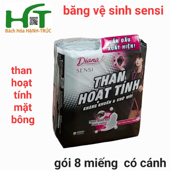 Băng Vệ Sinh SENSI Diana Than hoạt Tính Mặt Bông ( gói 8.miếng có cánh ))
