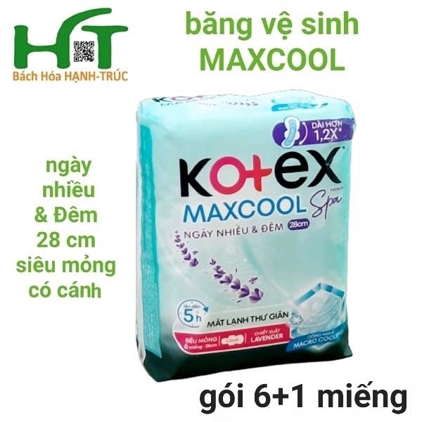 Băng Vệ Sinh Kotex Maxcool ngày nhiều & đêm gói 6+1 miếng x 28cm