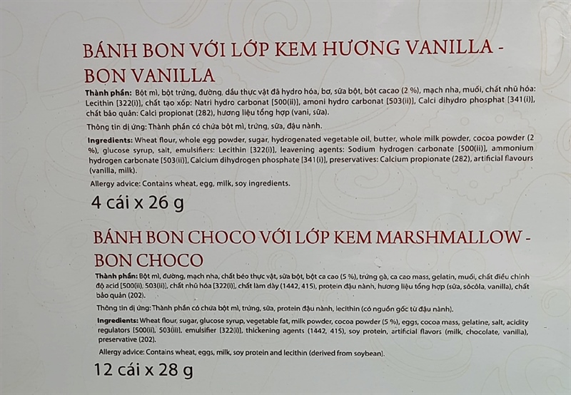 Bánh Bon Phạm Nguyên Với Lớp Kem Hương Vanilla, Choco hộp 440g ( 12 x 28g Cái ) - hộp