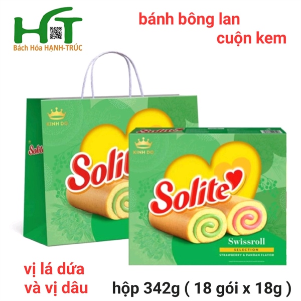 Bánh Bông Lan Cuộn Kem Solite KINH DO vị Lá Dứa+Dâu Hộp 324g ( 18 gói x 18g )