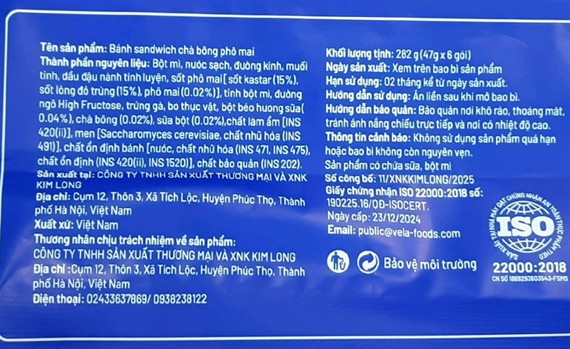 Bánh Mì Sandwich VELA Chà Bông Phô Mai Túi 282g ( 47g x 6 gói ) - túi