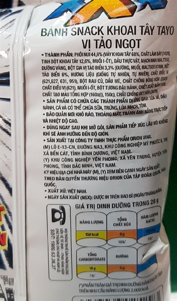 Bánh SNACK khoai Tây Tayo ORION Vị Tảo Ngọt 28g - gói