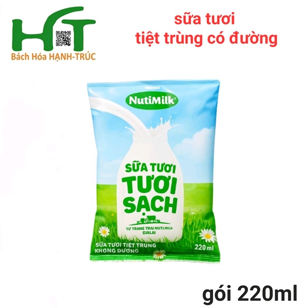 Sữa Tươi NutiMilk Tiệt Trùng Có Đường 220ml