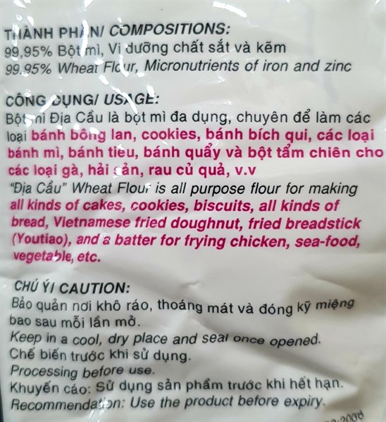 Bột mì đa dụng Địa Cầu 1kg - bọc