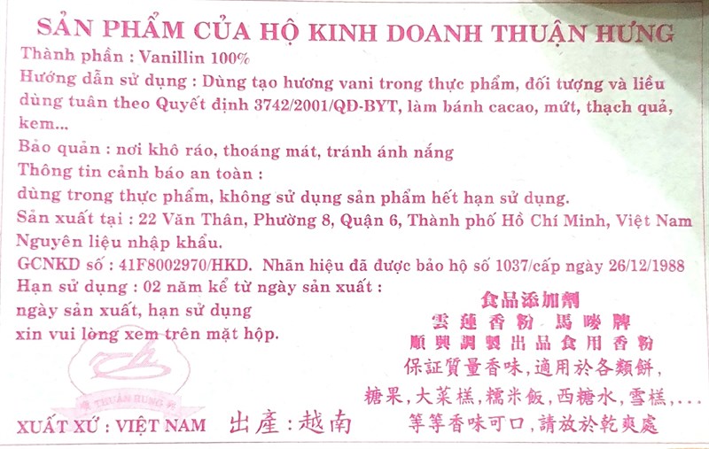 Bột thơm Vanillin thuận hưng - óng