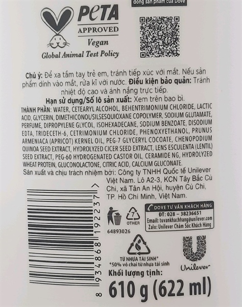 Kem Xả Phục Hồi Hư Tổn Dove chai 610g - chai