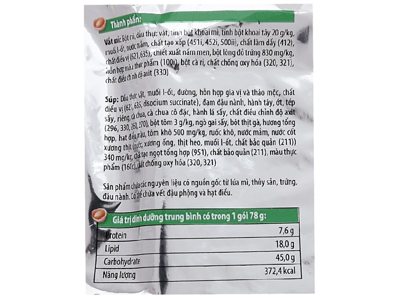 Mì khoai tây Omachi tôm chua cay 5 sao 80g - gói
