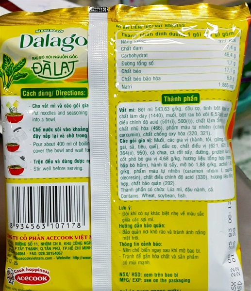 Mì Rau Bó Xôi Aceook dalago Hương Vị Bắp Bò Hầm actiso gói 84g - gói