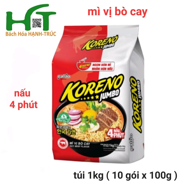 Mì Vị Bò Cay KORENO Nấu 4 Phúc túi 1kg ( 10 gói x 100g ) - lóc=10.