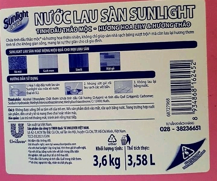 Nước Lau Sàn Sunlight 3,6kg ( hương hoa lily & bạch trà ) - can