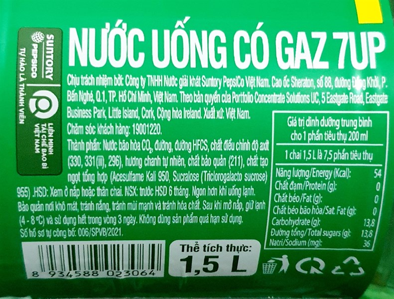Nước ngọt 7UP 1.5 lít (hương chanh) - chai