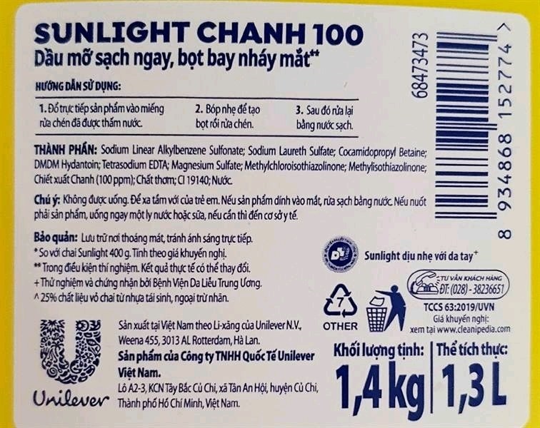 Nước Rửa Chén Sunlight 1,3 lít (Chanh 100) - can