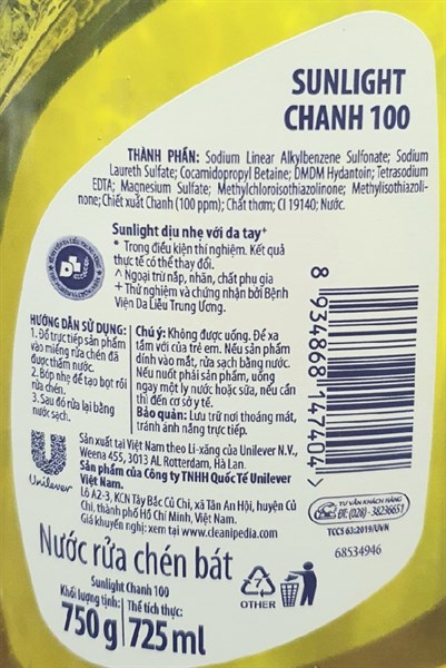 Nước rửa chén Sunlight 750ml (chanh 100) - chai