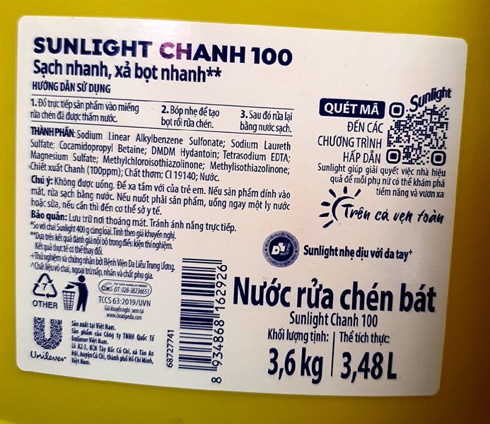 Nước Rửa Chén Sunlight hương chanh 3.6 ký - can