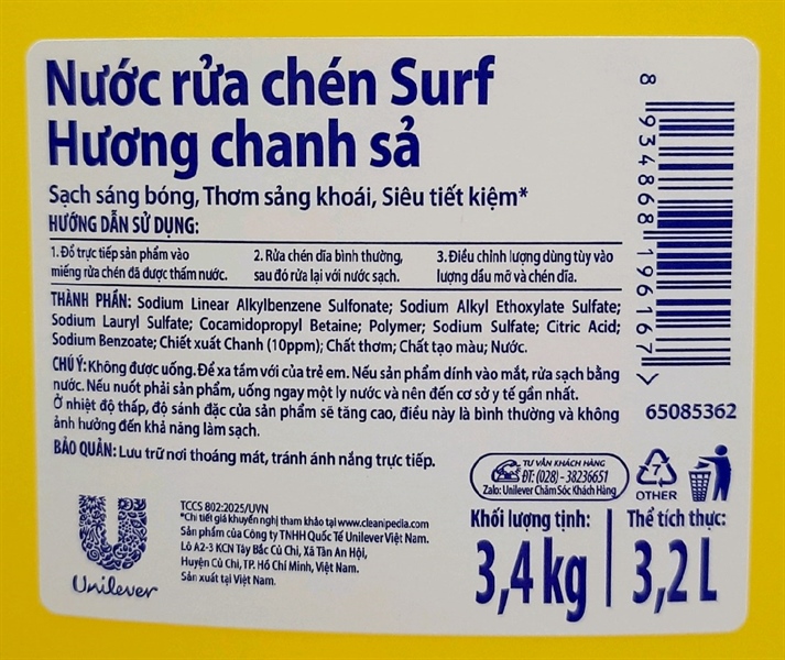 Nước Rửa Chén Surf 3.4kg ( Hương Chanh Xả ) - can